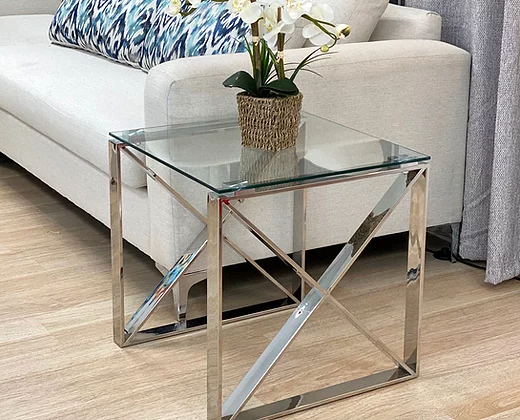 The brushed stainless steel frame and tempered glass surface of this contemporary end table is sure to add a welcome update to your home decor.